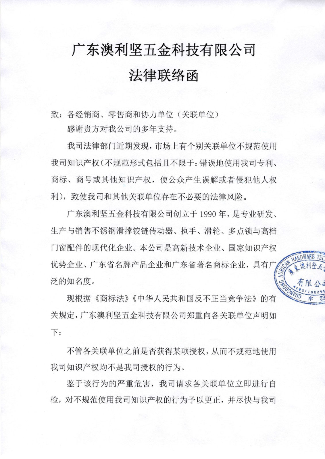我司法律部門近期發現,市場上有個別關聯單位不規範使用我司知識產權(不規範形式包括且不限於:錯誤地使用我司專利、商標、商號或其他知識產權,使公眾產生誤解或者侵犯他人權利),致使我司和其他關聯單位存在不必要的法律風險。為加強公司知識產權管理,保護公司知識產權專用權,促使生產、經營者保證商品和服務質量,維護公司知識產權信譽,保障消費者、生產、經營者的權益,現根據: